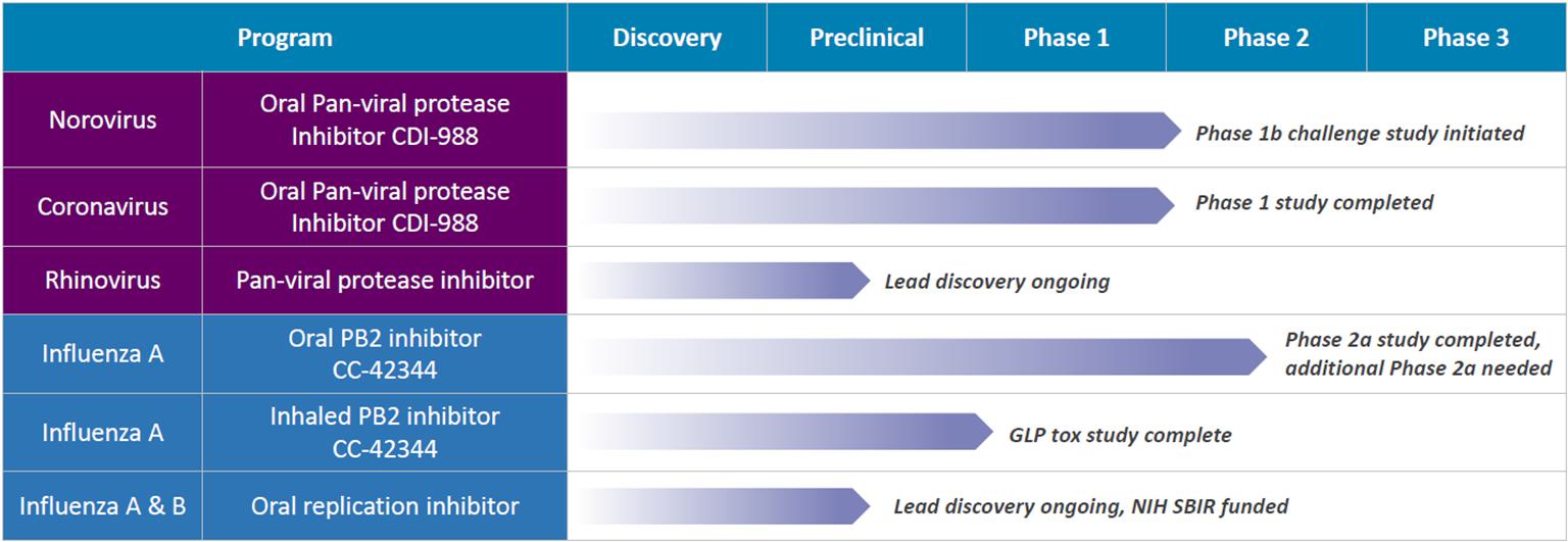 In September 2025 we received a Study May Proceed Letter from the FDA to conduct a Phase 1b challenge study in the U.S. evaluating CDI-988 as a norovirus preventive and treatment. In December 2025, we received Institutional Review Board approval from Emory University School of Medicine, the clinical study site for the Phase 1b trial, and announced that subject screening for the study was underway. In February 2026, we announced commencement of the Phase 1b challenge study at Emory University School of Medicine. The study’s primary efficacy endpoint is to assess the reduction in incidence of clinical symptoms, while the secondary efficacy endpoint focuses on the reduction in viral shedding and disease severity. The study will also assess the safety and pharmacokinetic profile of CDI-988.